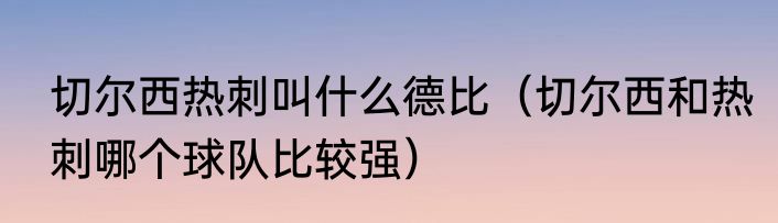 切尔西热刺叫什么德比?