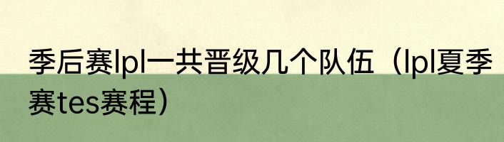 季后赛lpl一共晋级几个队伍(lpl夏季赛tes赛程)
