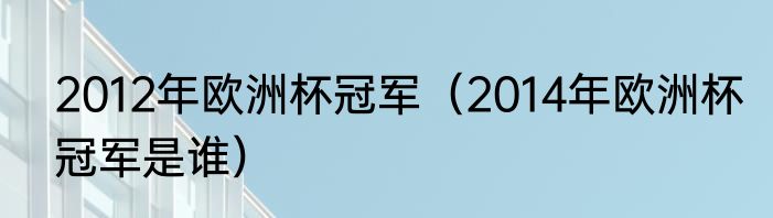 2012年欧洲杯冠军(2014年欧洲杯冠军是谁)
