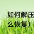 如何解压压缩文件包(解压缩文件怎么恢复)