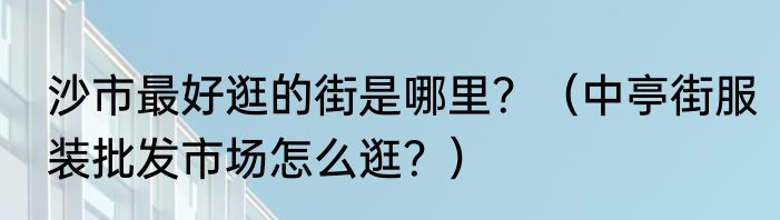 简介提及沙市最好逛的街是哪里?(中亭街服装批发市场怎么逛?)的相关内容,许多人不太了解,来看看小悌的介绍吧! 沙市最好逛的街是哪里?沙