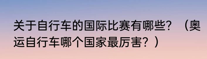 简介提及关于自行车的国际比赛有哪些?(奥运自行车哪个国家最厉害?)的相关内容,许多人不太了解,来看看小惠的介绍吧! 关于自行车的国际比