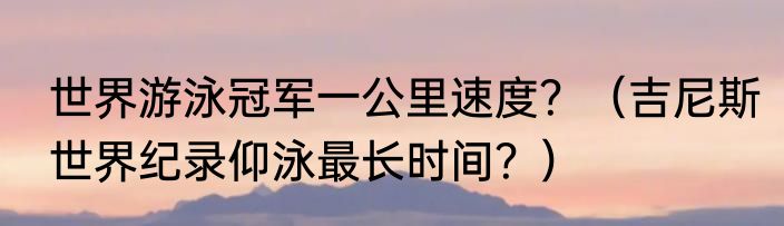 提及世界游泳冠军一公里速度?(吉尼斯世界纪录仰泳最长时间?)的相关内容,许多人不太了解,来看看小鹰的介绍吧!