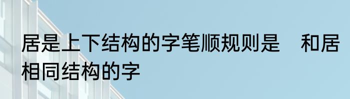 居是上下结构的字笔顺规则是 和居相同结构的字