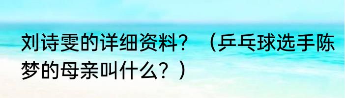 简介提及刘诗雯的详细资料?(乒乓球选手陈梦的母亲叫什么?)的相关内容,许多人不太了解,来看看小建的介绍吧! 刘诗雯的详细资料?刘诗雯出