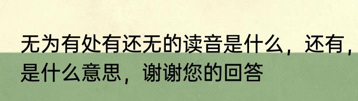 简介无为有处有还无的读音是什么,还有,是什么意思,谢谢您的回答?“无为有处有还无”的“还”字:【读音】hái【原句】“假作真时真亦假;无