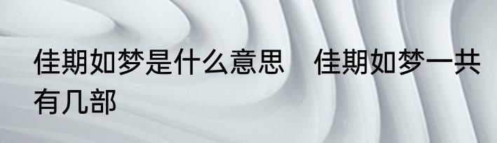 佳期如梦是什么意思 佳期如梦一共有几部