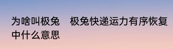 为啥叫极兔 极兔快递运力有序恢复中什么意思