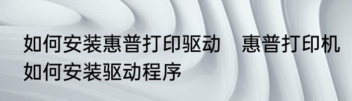 如何安装惠普打印驱动 惠普打印机如何安装驱动程序