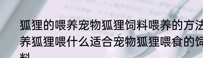 狐狸的喂养宠物狐狸饲料喂养的方法?