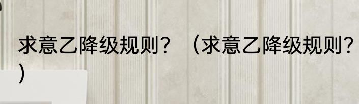 提及求意乙降级规则?(求意乙降级规则?)的相关内容,许多人不太了解,来看看小明的介绍吧!