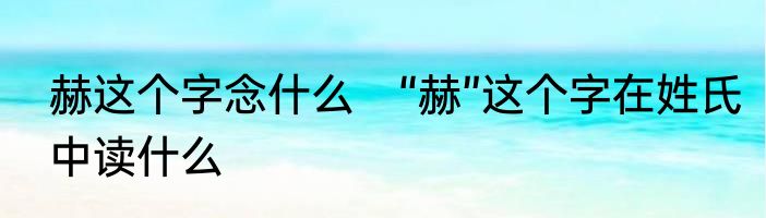 赫这个字念什么 “赫”这个字在姓氏中读什么
