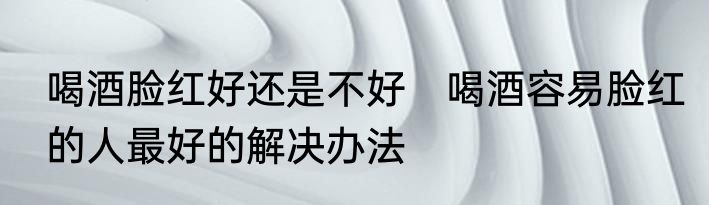 这个问题是这样的,喝酒脸红好还是不好,这个事情可不能一概而论的,有的人,一喝酒马上就脸红,但是,他不一定会醉,而有的人却是脸一红马上就要醉,每个人对酒精的耐受是不一样的,和脸红不红关系不大。