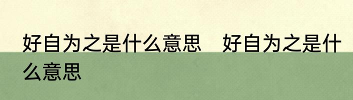 好自为之是什么意思?