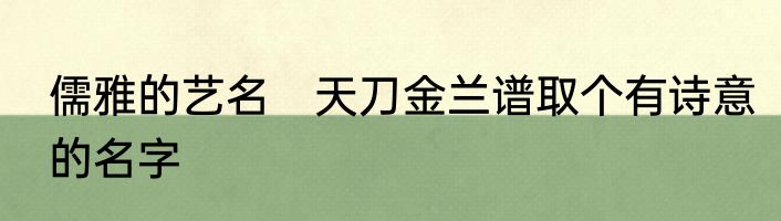 儒雅的艺名?