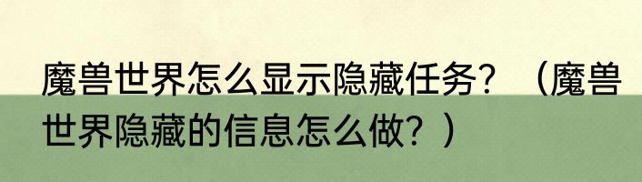 魔兽世界怎么显示隐藏任务?(魔兽世界隐藏的信息怎么做?)