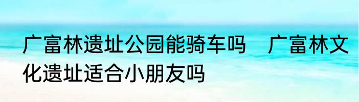 广富林遗址公园能骑车吗 广富林文化遗址适合小朋友吗