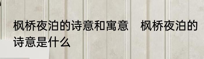 枫桥夜泊的诗意和寓意 枫桥夜泊的诗意是什么