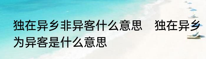 独在异乡非异客什么意思 独在异乡为异客是什么意思